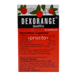 Dexorange Capsule is a haematinic medication that replenishes the iron stores in your body. It is used to treat anaemia caused due to various conditions such as menorrhagia, hookworm infestations, ulcers, piles, etc. It is also used to treat anaemia manifested by generalised weakness, during pregnancy, or after surgery. It can also be used to supplement low iron intake in people with inadequate diets, alcoholics, smokers, etc.