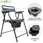 Entros Commode Foldable Chair With Armrest & Backrest (C779B) Oval Cut offers a comfortable and safe solution to any individual having joint pain issues, knee injury, and back pain problems to sit and stand from the toilet with comfort. This chair is foldable which make it ideal for transportation and storage purposes.