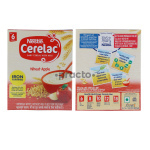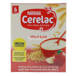 The Cerelac wheat is formulated with wheat flour, milk solids, sucrose, soybean oil, minerals, and vitamins.