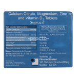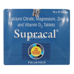 Supracal Tablet is a Calcium, Vitamin D, Magnesium and Zinc supplement which is used for improving bone and joint health. It is used for treating Calcium and Vitamin D deficiency and associated conditions such as osteoporosis, osteomalacia, bone and joint pain, bone and joint weakness, etc.