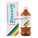 Zincovit Syrup is a combination of multivitamins and multi-minerals. These vitamins are essential for blood formation and other vital functions. It is used to treat vitamin deficiencies and anemia. Vitamin deficiencies are often manifested with mouth ulcers, white patches on the skin, weakness, weight loss, etc. It is also used as a nutritional food supplement. This syrup helps in improving immunity, nerve function, and blood circulation. It also helps in weight management and overall health.